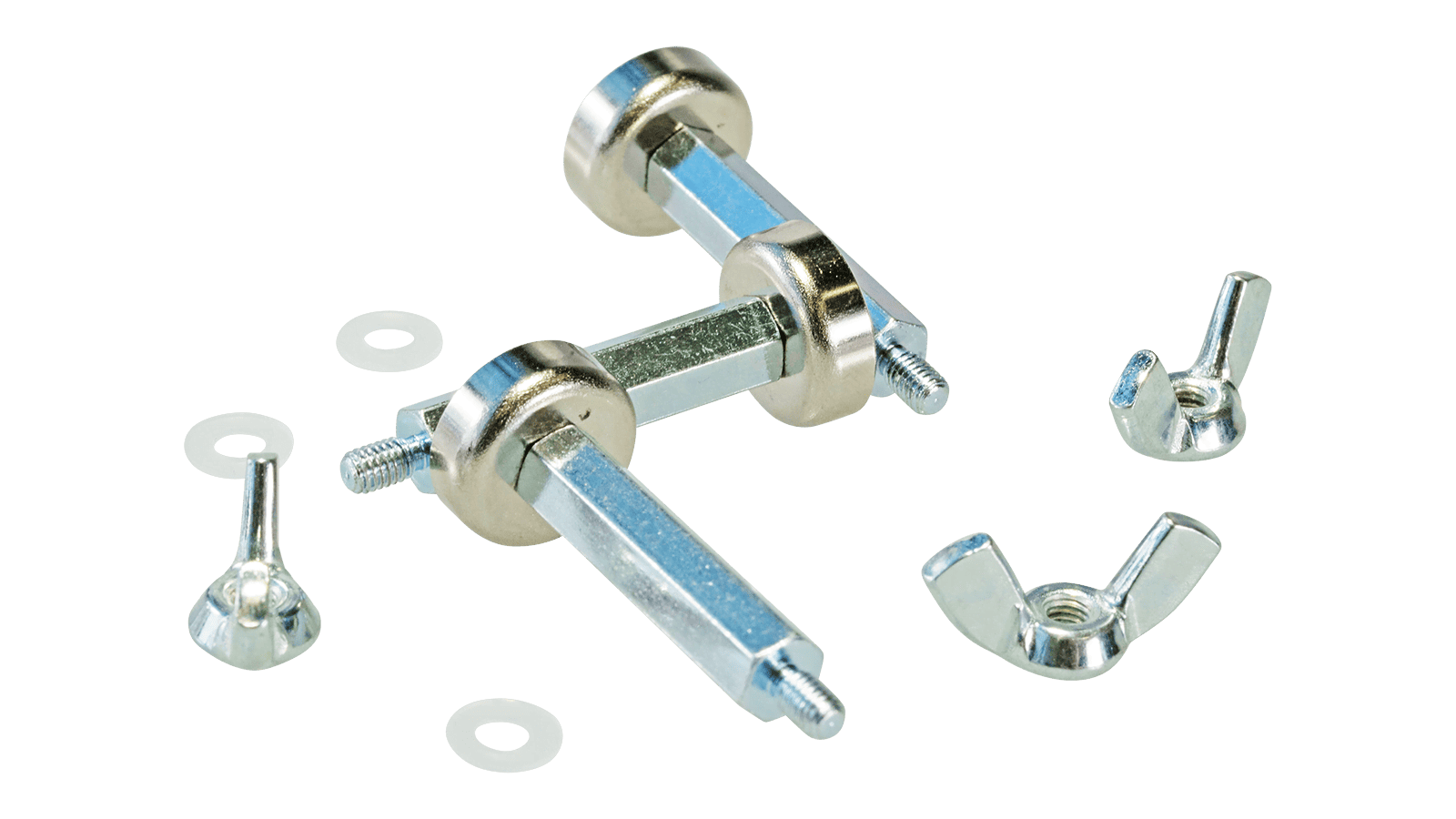 Montage-Kit mit Magneten und Flügelmuttern für unsere LED Module für die schnelle und einfach Umrüstung von bestehenden Leuchten mit konventionellen Leuchtmittel auf LED.