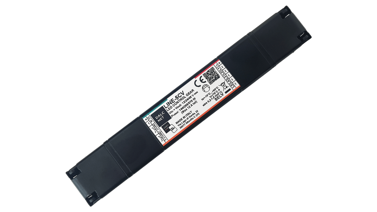 LINE-5CV kann einen maximalen Ausgangsstrom von 12A liefern und verfügt über die folgenden Schutzfunktionen: Kurzschlussschutz an den LED-Ausgängen, Überspannungsschutz, Verpolungsschutz und Eingangssicherung.