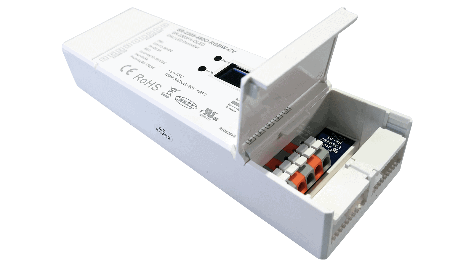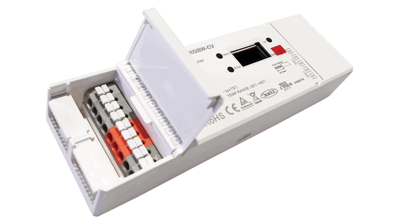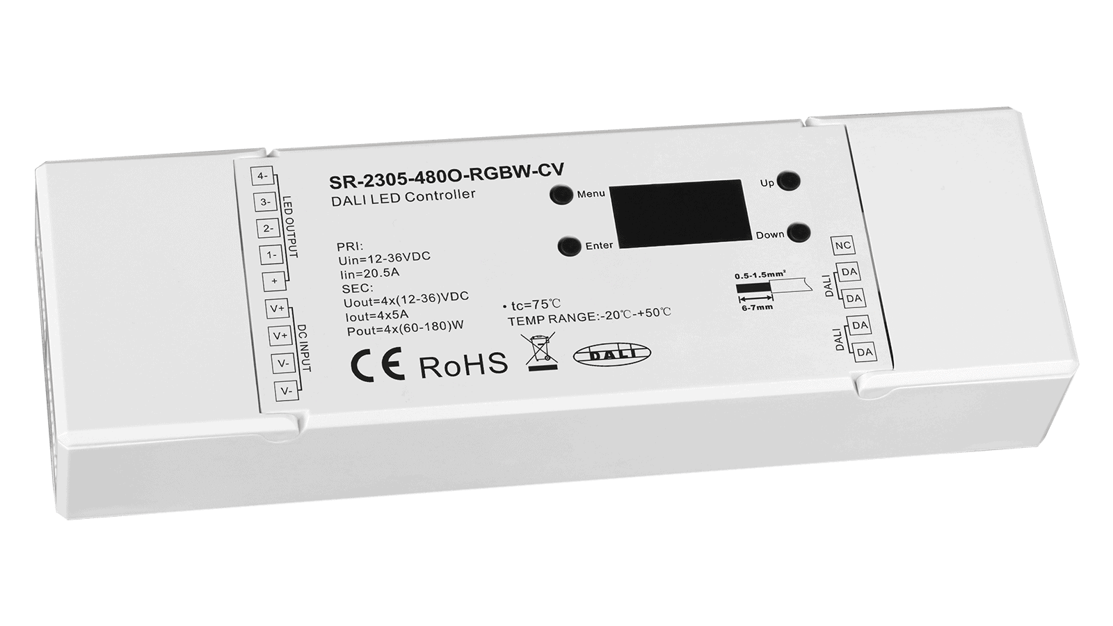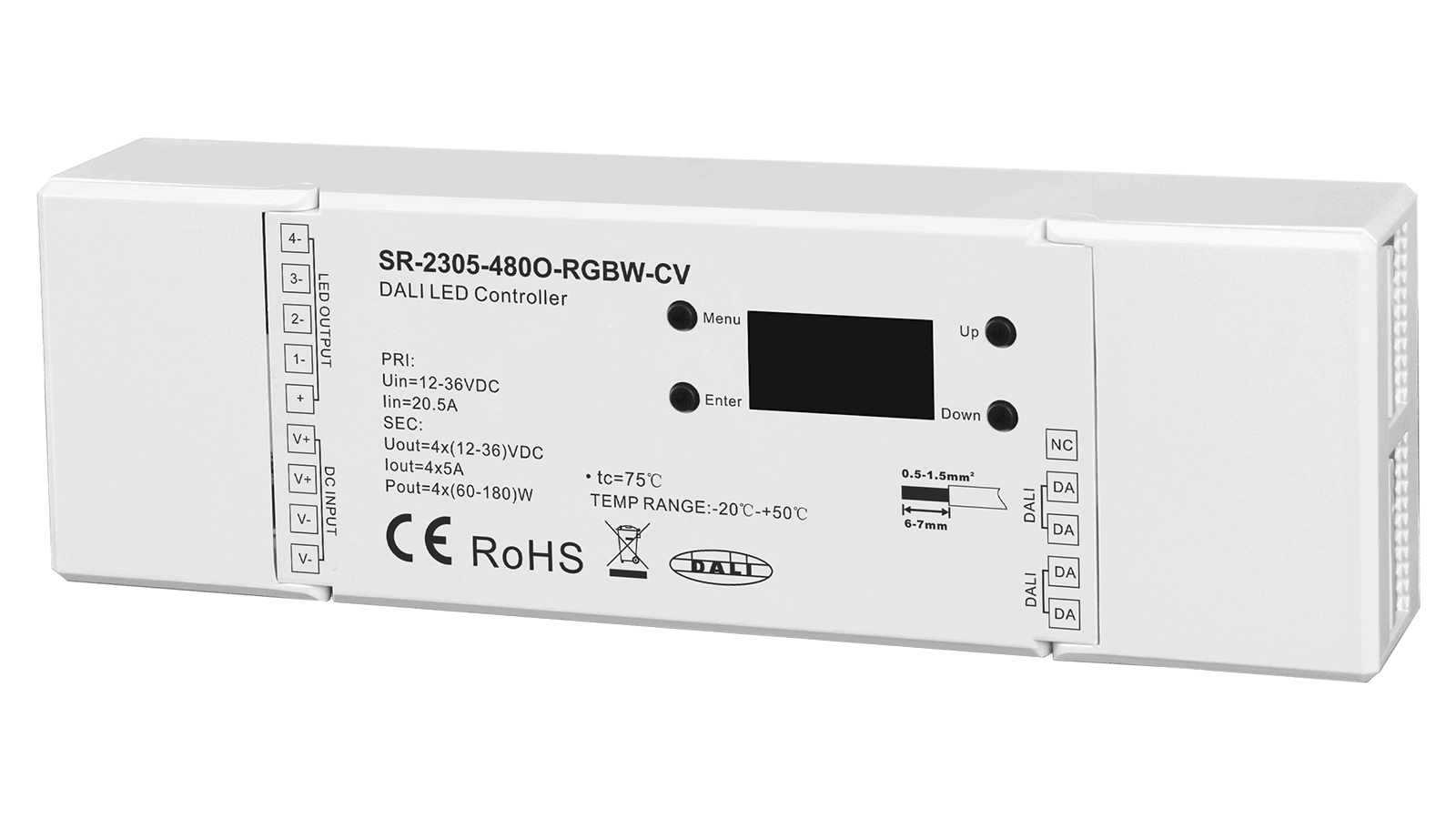 Der 4 Kanal SR-2305-480O-RGBW-CV mit konfigurierbaren PWM Ausgang, MASTER Funktion und DALI DT6 Schnittstelle ist ideal für den Betrieb von RGBW Konstantspannungs LED Anwendungen wie z.B. LED Streifen geeignet.
