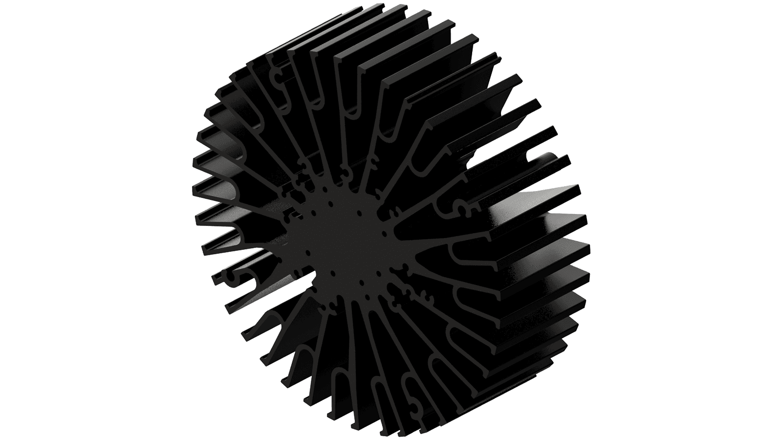 Modular LED star heat sink, ø152mm, H 50mm, Black anodized