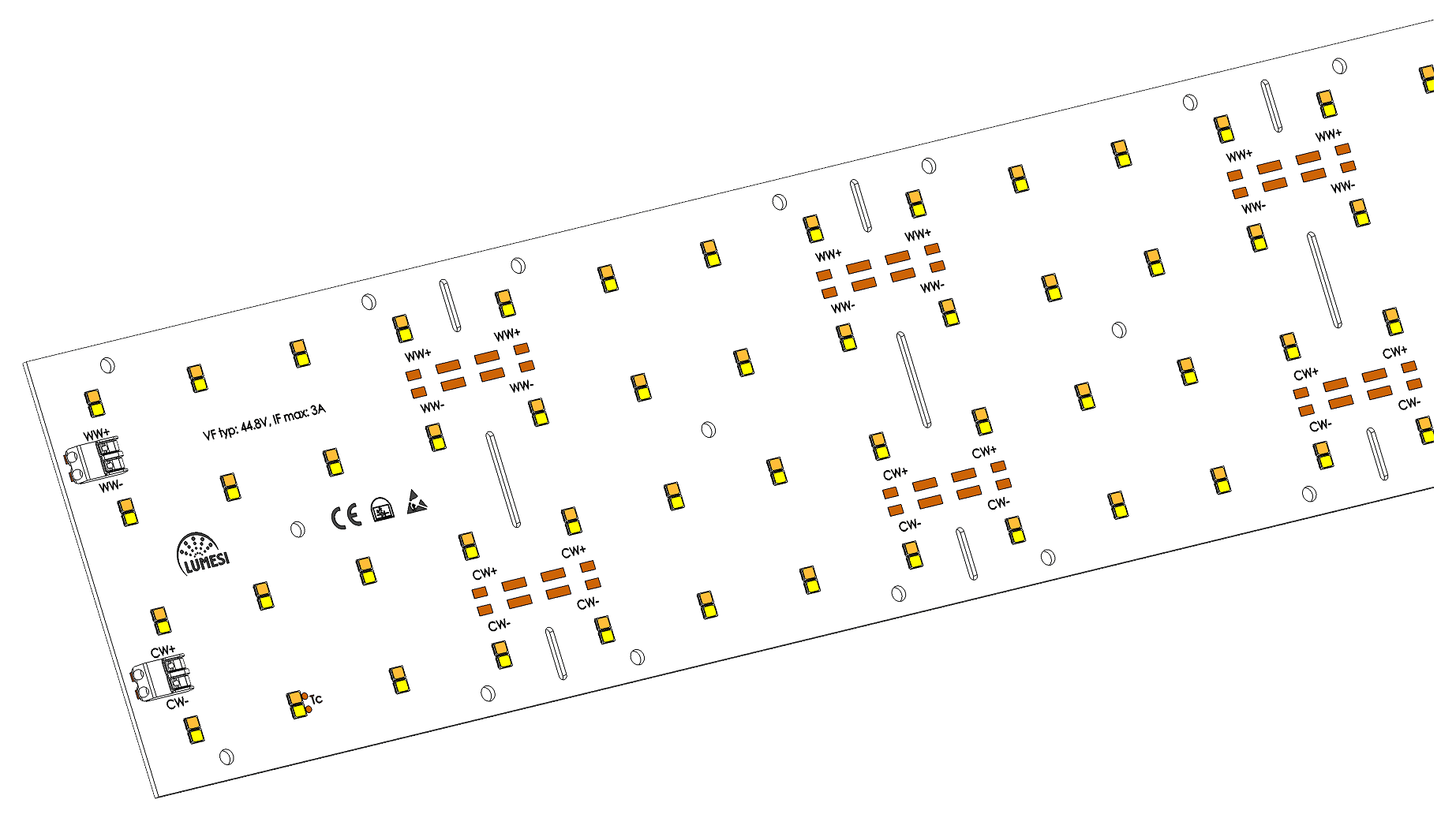 - Rechteckiges Tunable White LED-Modul mit einer einstellbaren Farbtemperatur von 3000K bis 4000K (= ein Print für 3000K oder 4000K)