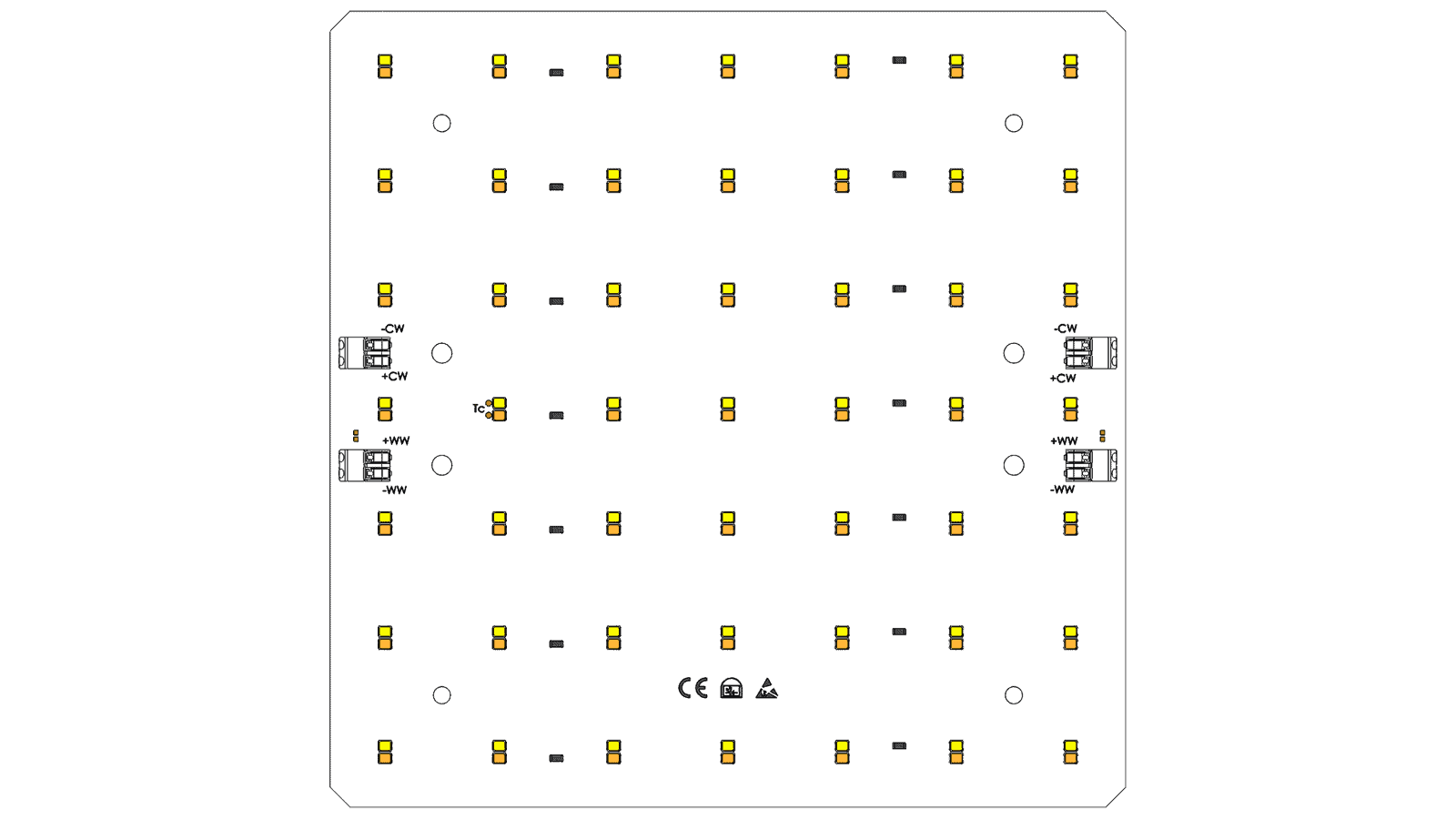 • Quadratisches Tunable White LED-Modul mit einer einstellbaren Farbtemperatur von 2700K bis 6500K (= ein Print für 2700K oder 6500K)