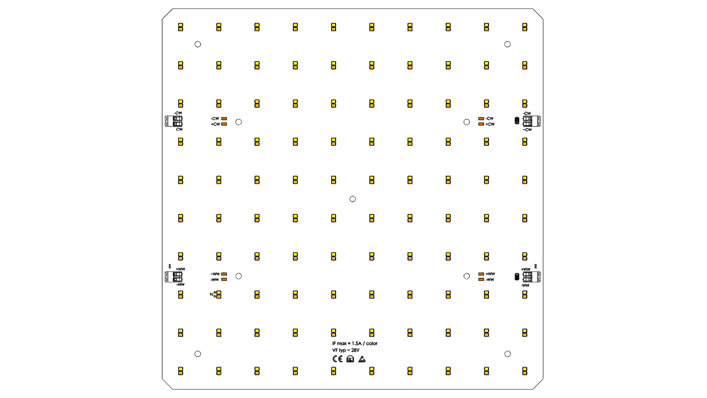 - Quadratisches Tunable White LED-Modul mit einer einstellbaren Farbtemperatur von 3000K bis 4000K (= ein Print für 3000K oder 4000K)