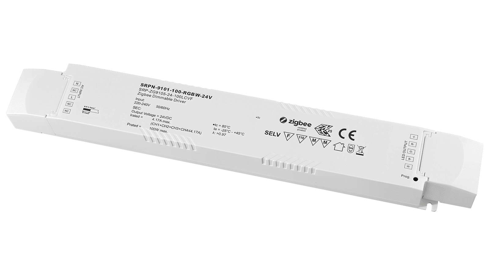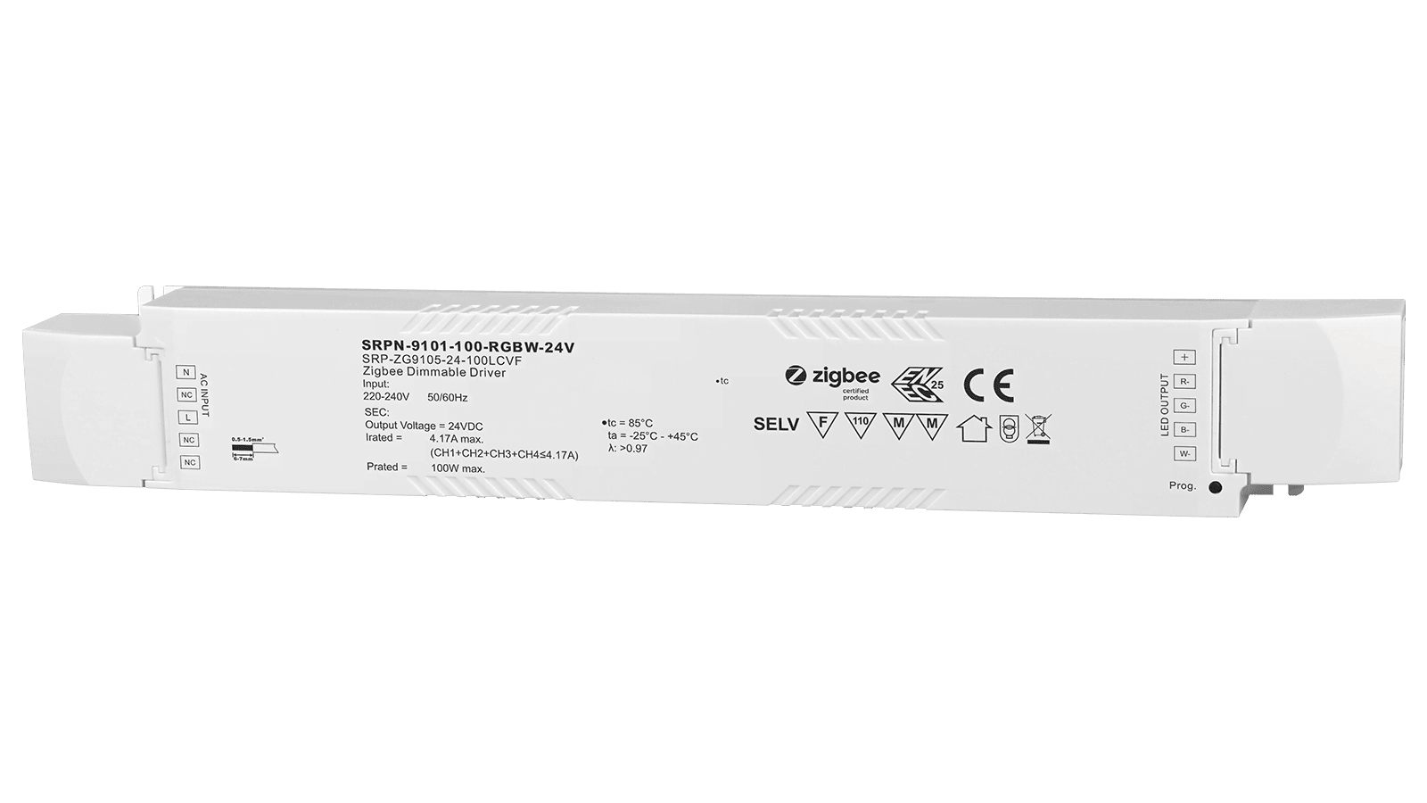 SRPN-9101-100-RGBW-24V mit PWM Ausgang und integrierter ZIGBEE 3.0 Schnittstelle ist ideal für den Betrieb von RGBW Konstantspannungs LED Anwendungen wie z.B. LED Streifen geeignet.