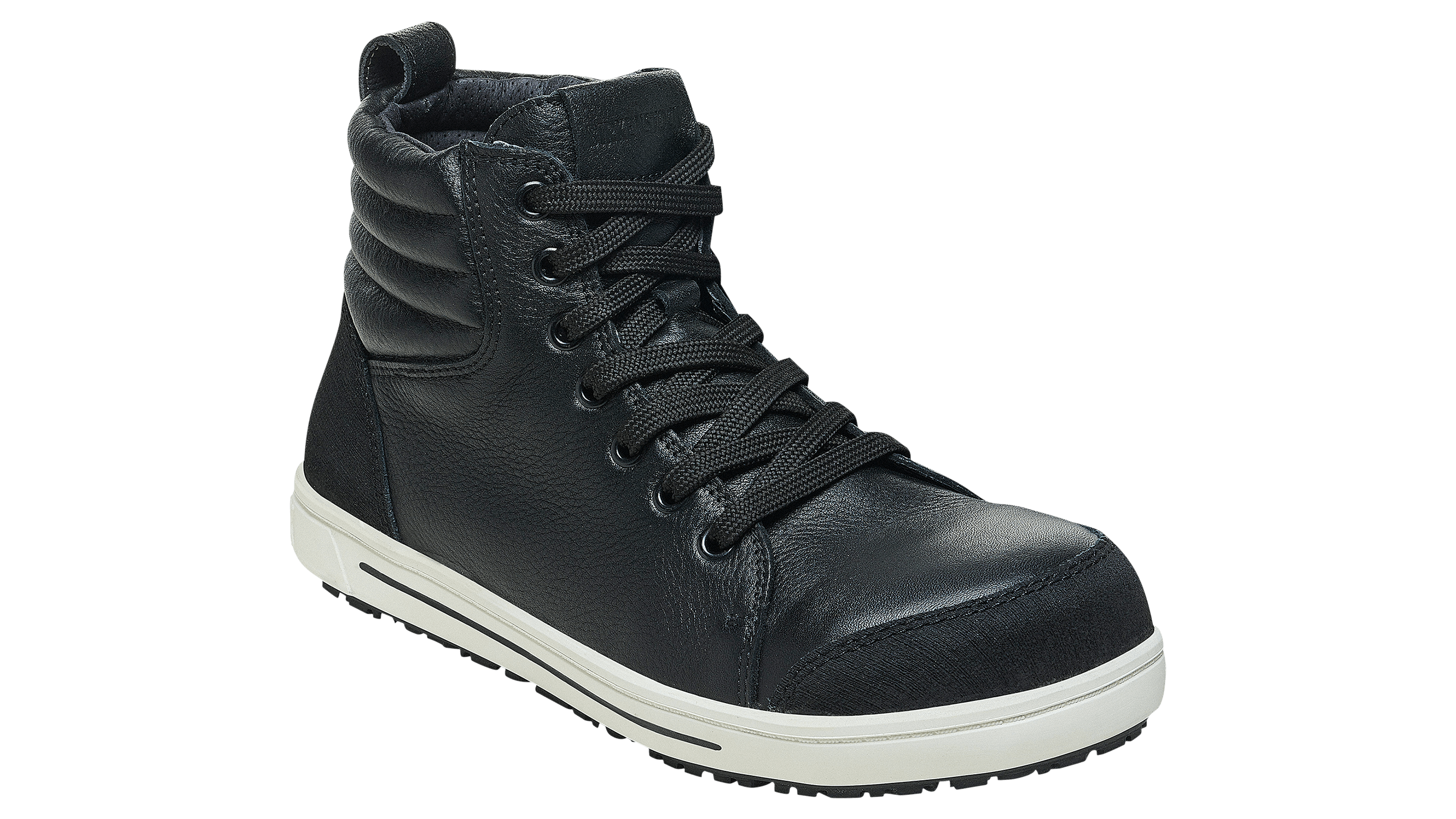 Der Sicherheitsschuh QS700 von BIRKENSTOCK mit auswechselbarem Fußbett gibt sicheren Halt und entlastet Ihre Füße, damit Sie bei der Arbeit auch in einem herausfordernden Umfeld viele Stunden am Tag bequem stehen, gehen und laufen können. Der QS700 präsentiert sich als moderner, knöchelhoher Sneaker mit 7-Loch-Schnürung und Fersenlasche. Die rutschhemmende, metallfreie sowie öl- und benzinresistente Laufsohle sorgt für eine Energieaufnahme im Fersenbereich und ist durchtrittsicher. Eine 200 Joule Stahlkappe mit kratzfestem Kappenschutz schützt den Vorderfuß. Das Obermaterial besteht aus wasserabweisendem Glattleder (WRU) und bietet antistatischen Schutz. Der Schuh ist nach EN ISO 20345:2011 zertifiziert und erfüllt die Anforderungen der Schutzklasse S3.