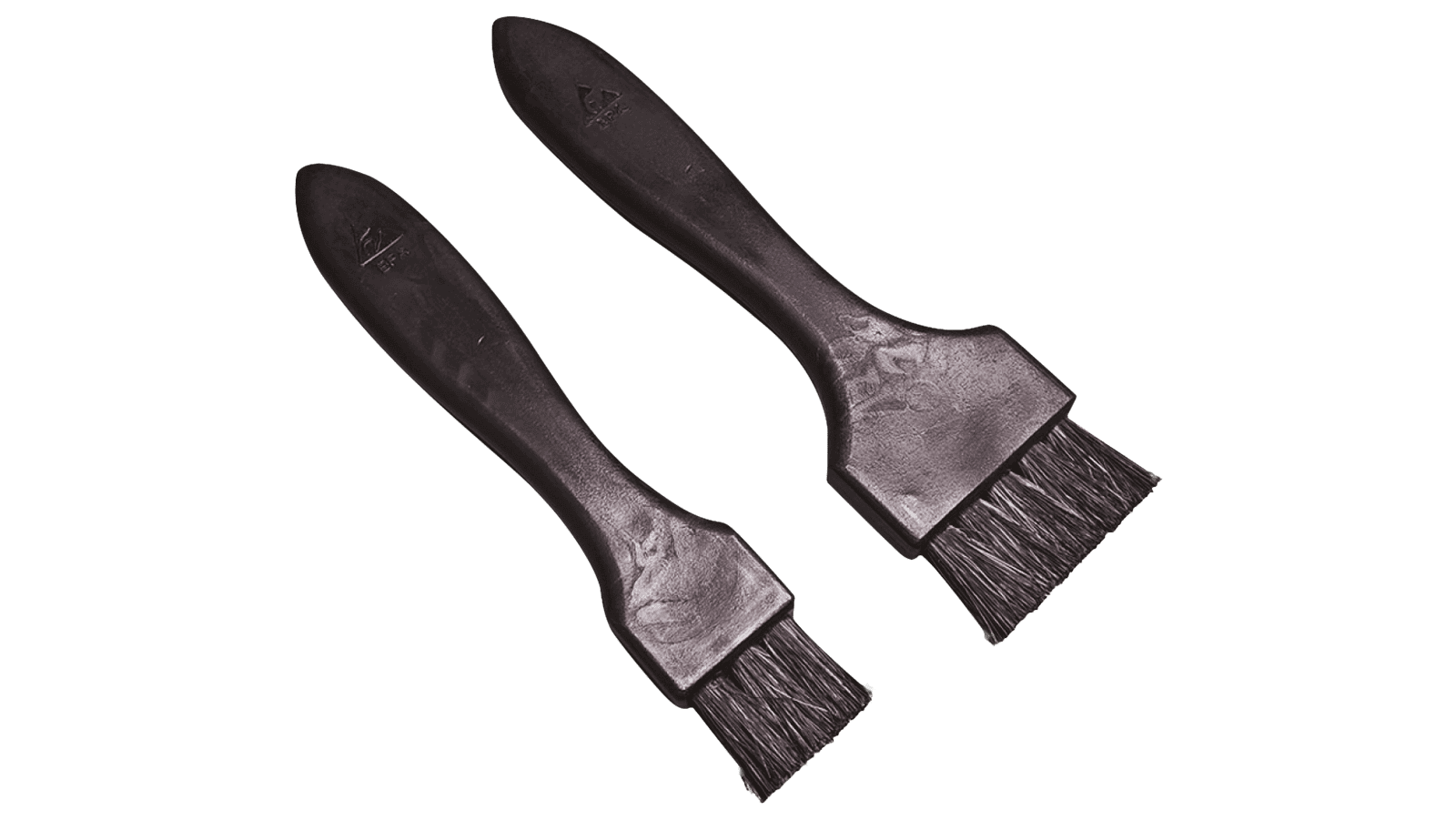 - Die Bürsten bestehen aus einem elektrostatisch volumenleitfähigem Kunststoffgriff und eingearbeiteten Naturborsten, die mit leitfähigen Fasern vermischt sind