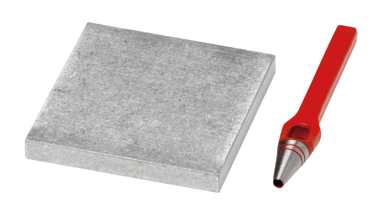 - Locheisen mit Aluplatte zum Stanzen von Löchern für die Druckknopfnieten in Tisch- und Bodenbeläge