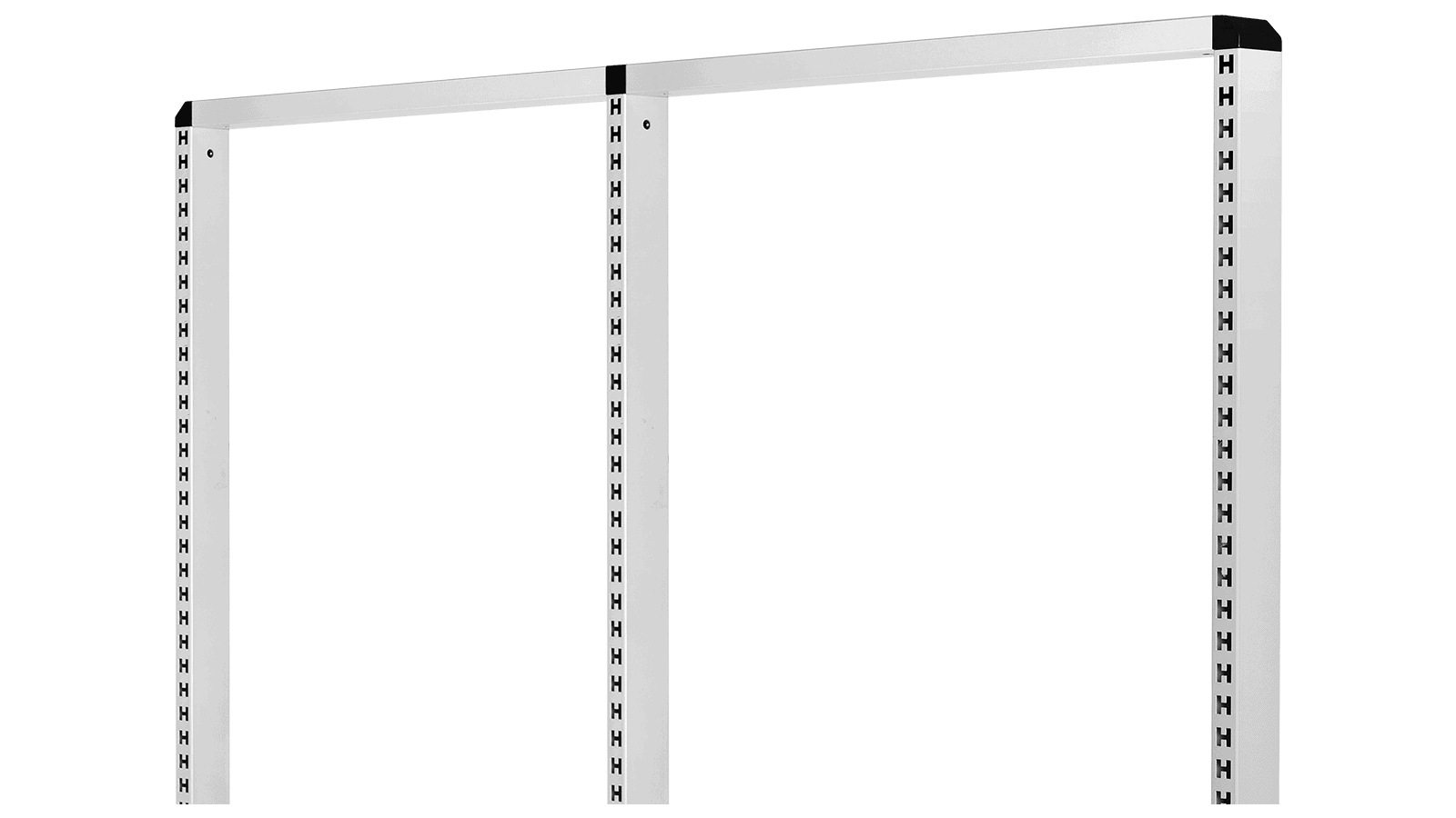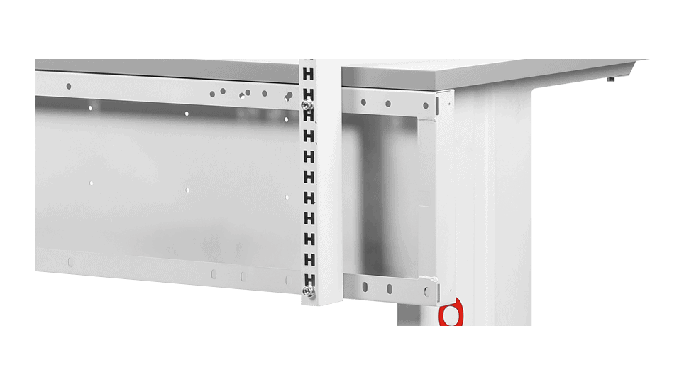 Der perforierte vertikale Rahmen stellt eines der Grundelemente dar. Zubehör wie Regale, Kunststoffbehälter, Lochplatten werden an dem Rahmen montiert. Die Perforation ermöglicht die Platzierung des Zubehörs in jeder gewünschten Höhe. Der Rahmen ist in drei Standardbreiten erhältlich.