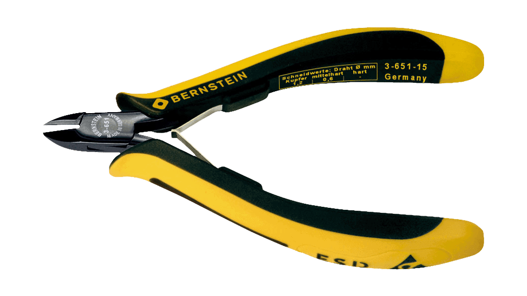 Hergestellt aus Spezial-Werkzeugstahl, hochglanz brüniert, durchgestecktes Gewerbe, mit ableitfähiger 2-K Handschutzhülle und austauschbarer Doppelblattfeder.