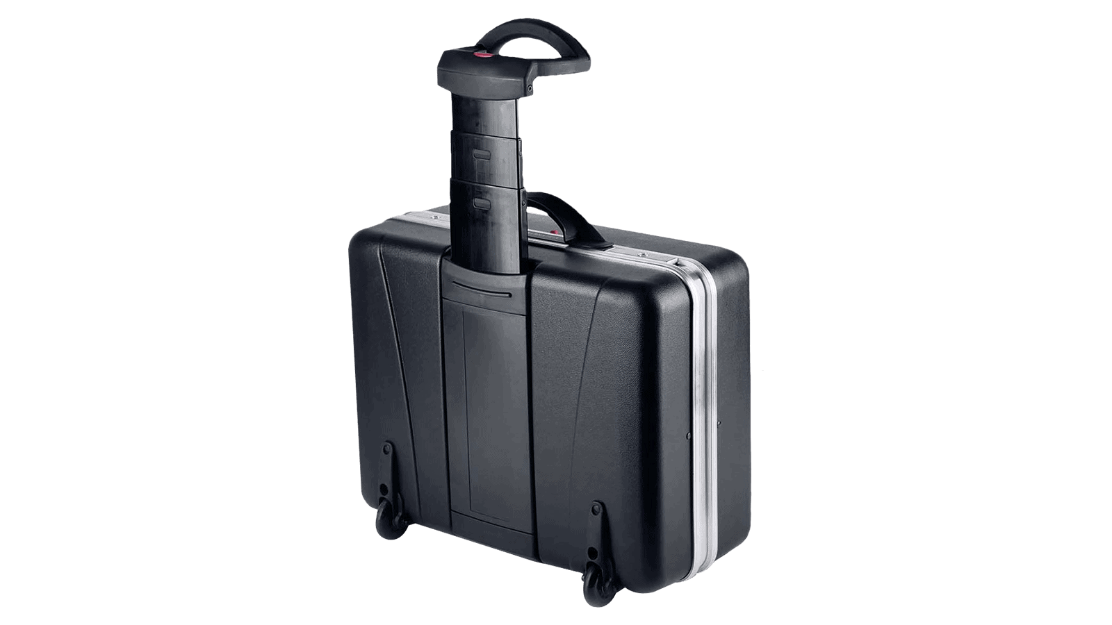 Der formstabile und robuste Rollenkoffer für hohe Belastungen. Mit dem Doppel-Aluminiumrahmen und dem bruchstabilen X-ABS Kofferschalen ist der Koffer bis zu 40 kg belastbar und zudem flugtauglich. Der 4-fach Teleskopauszug ist pulverbeschichtet und besitzt einen ergonomischen Handgriff, der sich formschlüssig mit dem Koffergriff ergänzt. Durch den breiten Radstand und den gummierten und gelagerten Laufrollen meistert der POTECTION XL auch unebene Wege. Die Rasterscharniere mit Kofferdeckel-Arretierung gehören zum Standard unserer Werkzeugkoffer.