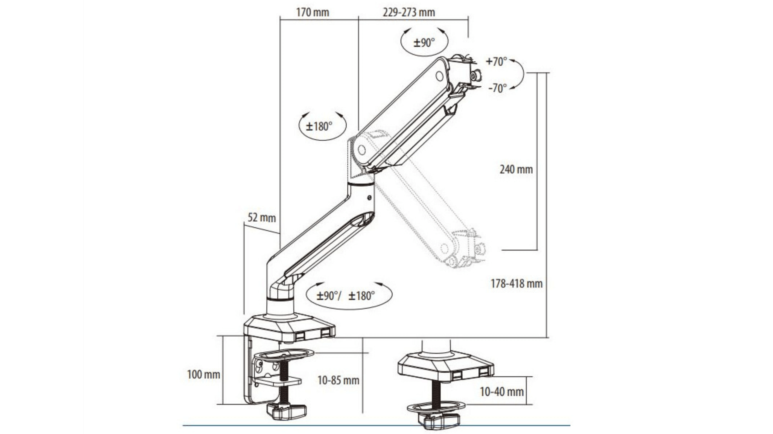 - Schwenkbereich 180°