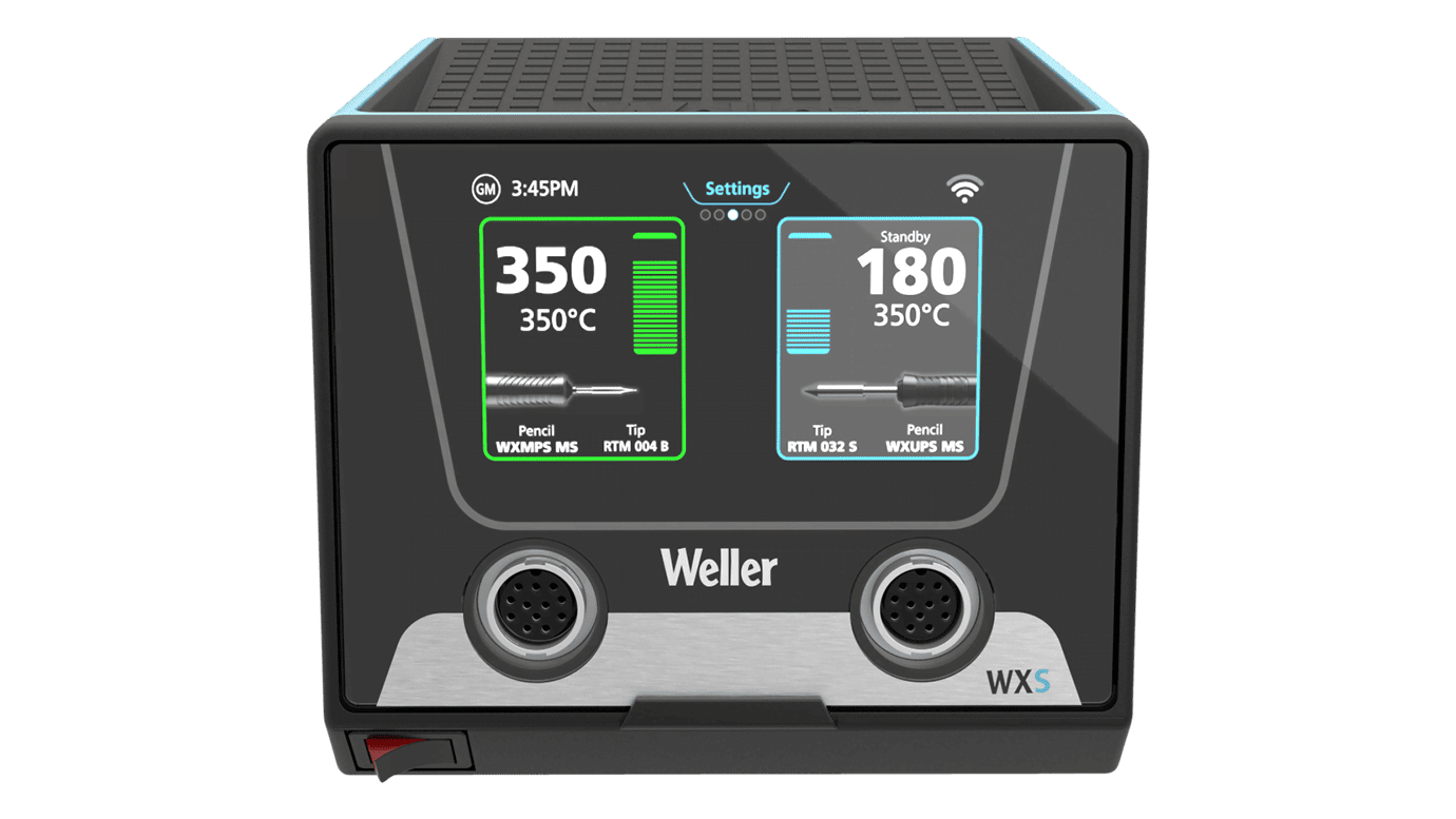 Mit dem WXAir-Reworkmodul lässt sich das System unkompliziert zur vollwertigen Reworkstation erweitern. Die Station bietet 300 W Leistung, verfügt über zwei Lötkanäle sowie je einen Kanal für Heissluft und Vakuum. Insgesamt können bis zu 16 Werkzeuge an die WXsmart angeschlossen werden – ganz ohne zusätzliche Station.