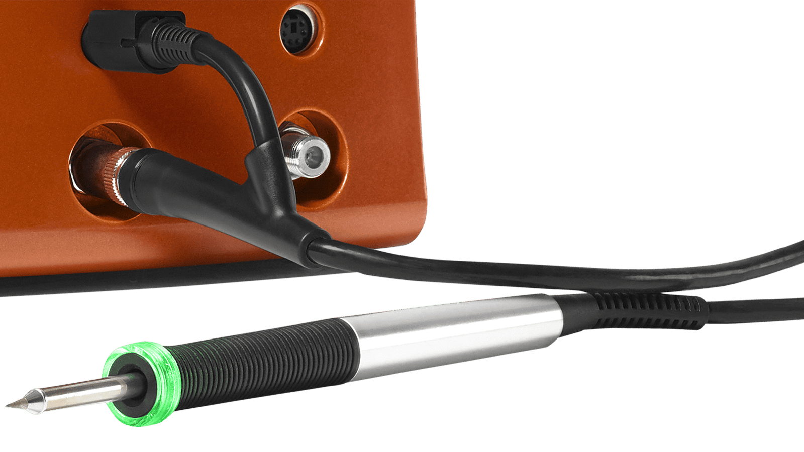 Der Advanced-Lötgriffel CV-H1-AV des Connection Validation- Systems verfügt über einen LED-Ring, der anzeigt, wenn die intermetallische Phase beim Lötprozess ausgebildet ist. Dies hilft dem Anwender, die Qualität der Lötstelle beurteilen zu können.