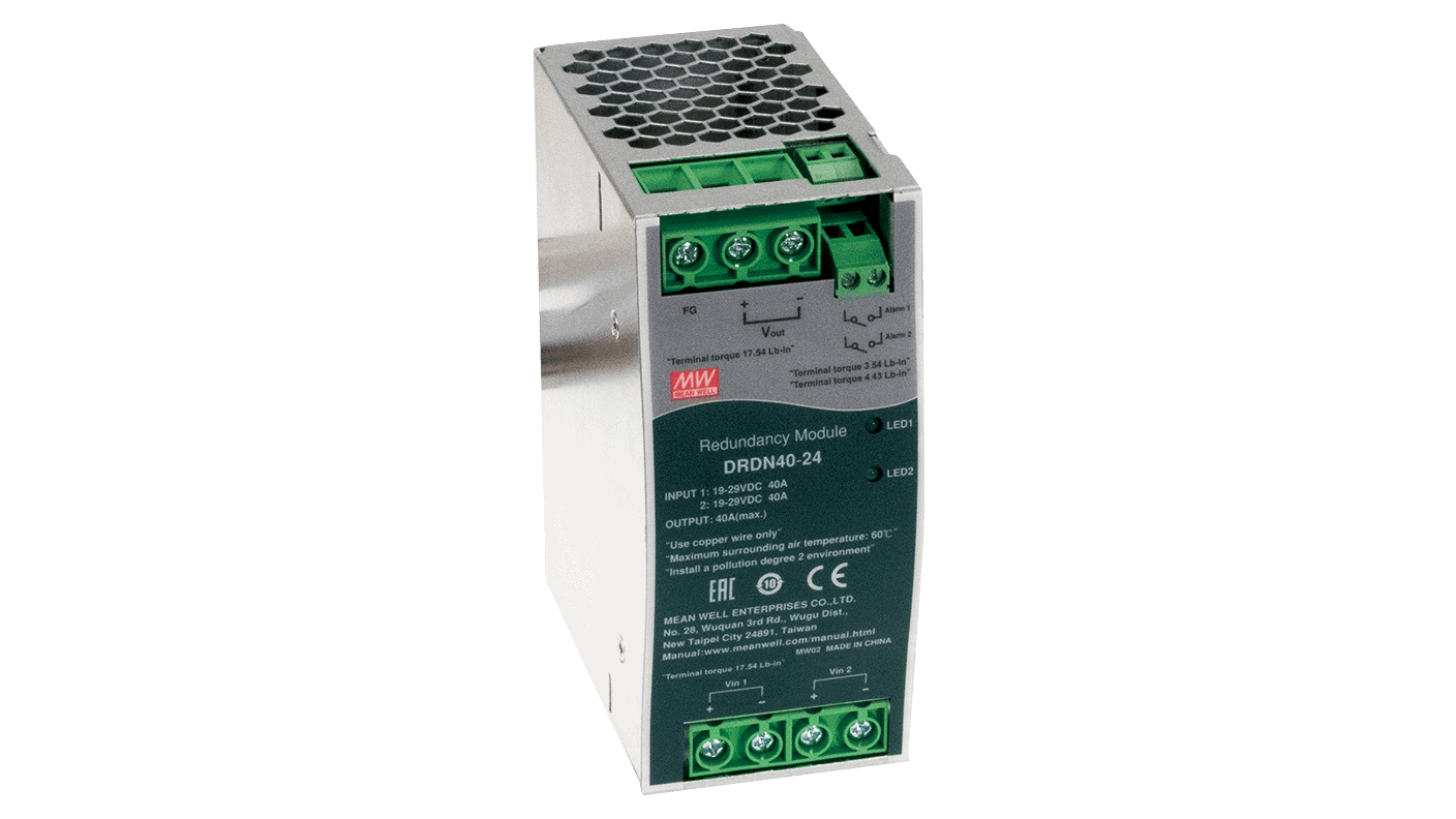 DRDN-40-12 ist ein 40A Redundanzmodul welches verwendet werden kann um die Zuverlässigkeit des Gesamtsystems zu verbessern. Die verwendete MOSFET Technologie erhöht den Wirkungsgrad und reduziert den Spannungsabfall zwischen Ein- und Ausgangsspannung. Zur Überwachung ist pro Kanal ein DC OK Relais Kontakt eingebaut.