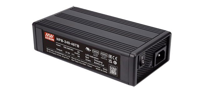 NPB-240-48 ist ein Batterieladegerät für Blei- oder Lithium-Ionen Akkus. Mittels DIP-Switch kann die Ladekurve für 2-Stufige (Li-ion) oder 3-Stufige (Blei) Charakteristik gewählt werden. Ladestrom und Ladespannung können mit Potentiometern am Gerät auf den jeweiligen Akku eingestellt werden. Variante mit Schraubklemmenblock.