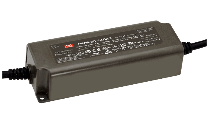 PWM-60 ist ein LED Konverter mit PWM Ausgang und integrierter DALI 2 Schnittstelle. Das Netzteil ist ausgelegt für den Betrieb von Konstantspannungs LED Anwendungen geeignet.