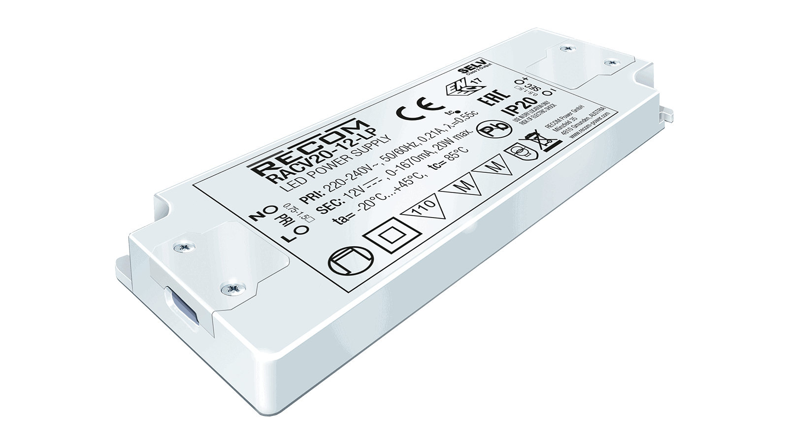 Diese Konstantspannungs-LED-Treiber wurden für kostensensitive Anwendungen entwickelt. Dank ihrer flachen Bauweise lassen sie sich unsichtbar in Möbel einbauen, diskret unter Regalen montieren oder in platzbeschränkte Anwendungen integrieren.