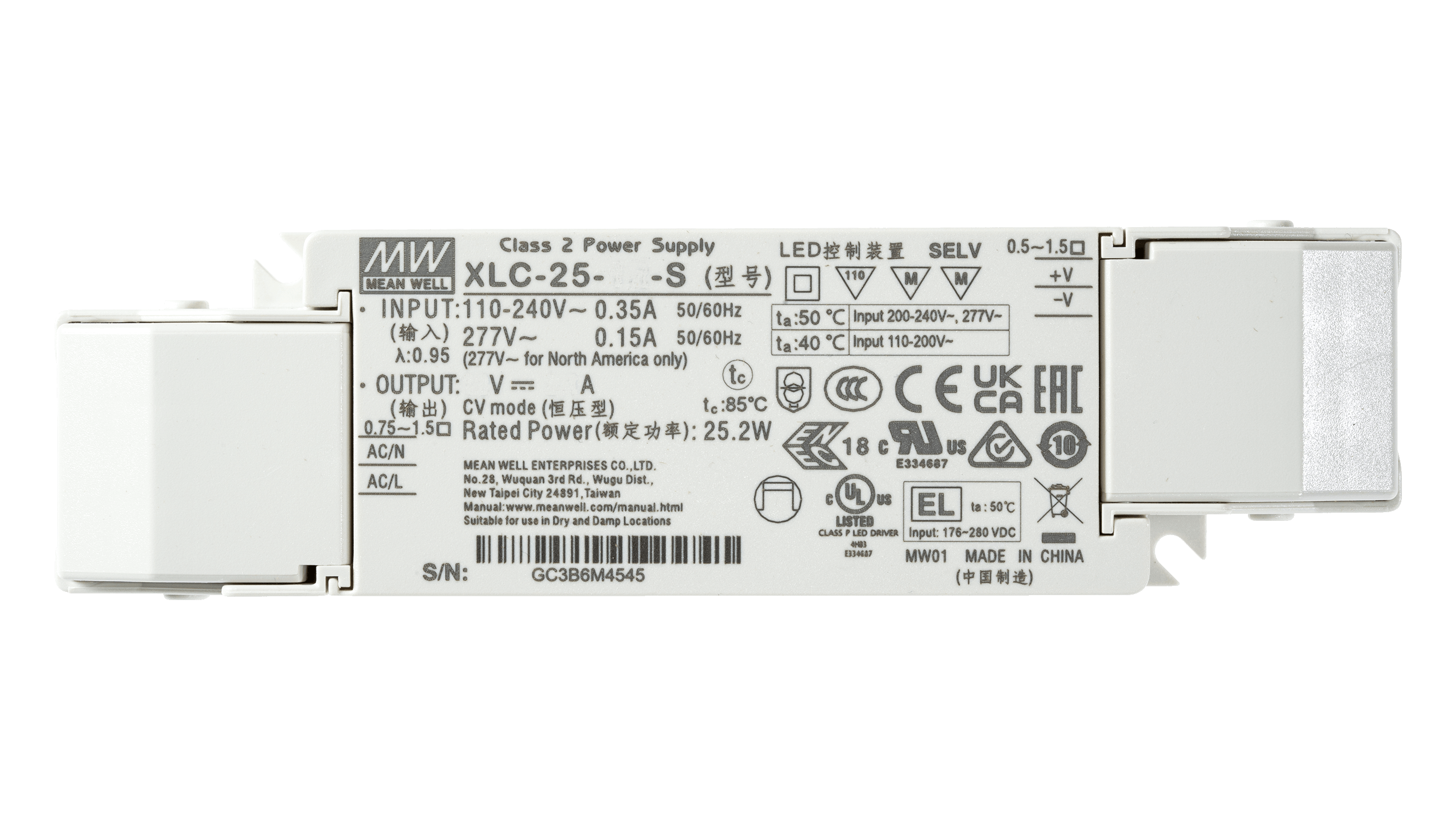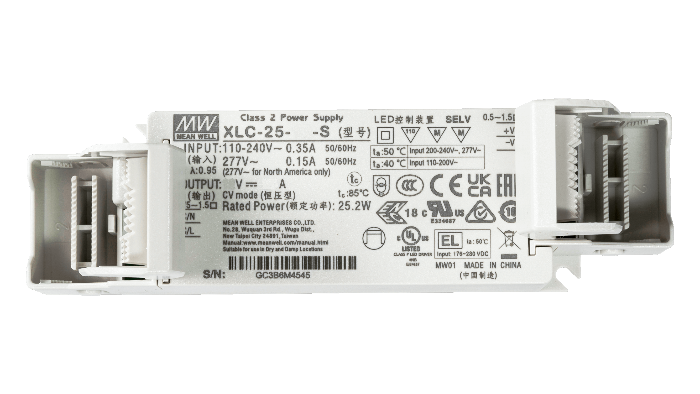 XLC-25-24-S ist ein 25 Watt LED Treiber für 24Vdc LED Anwendungen. Der Anschluss über Push-in Klemmen und die integrierte Zugentlastung machen den XLC-25-24-S ideal für den Einbau in oder auch ausserhalb von Leuchten.