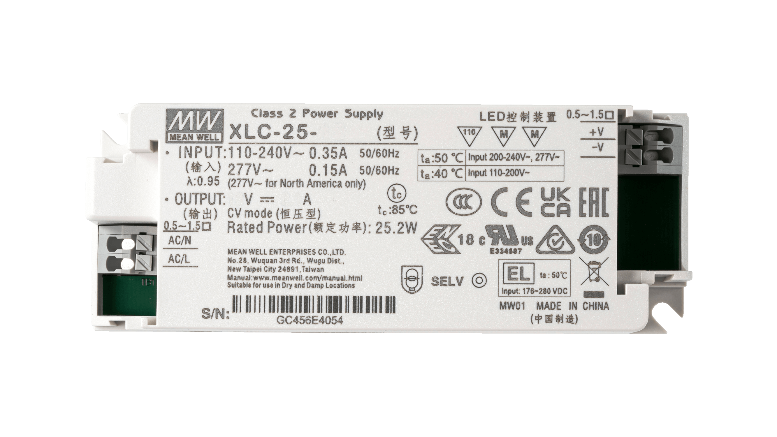XLC-25-24 ist ein 25 Watt LED Treiber für 24Vdc LED Anwendungen. Der Anschluss über Push-in Klemmen und die kompakten Abmessungen machen den XLC-25-24 ideal für den Einbau in Leuchten.