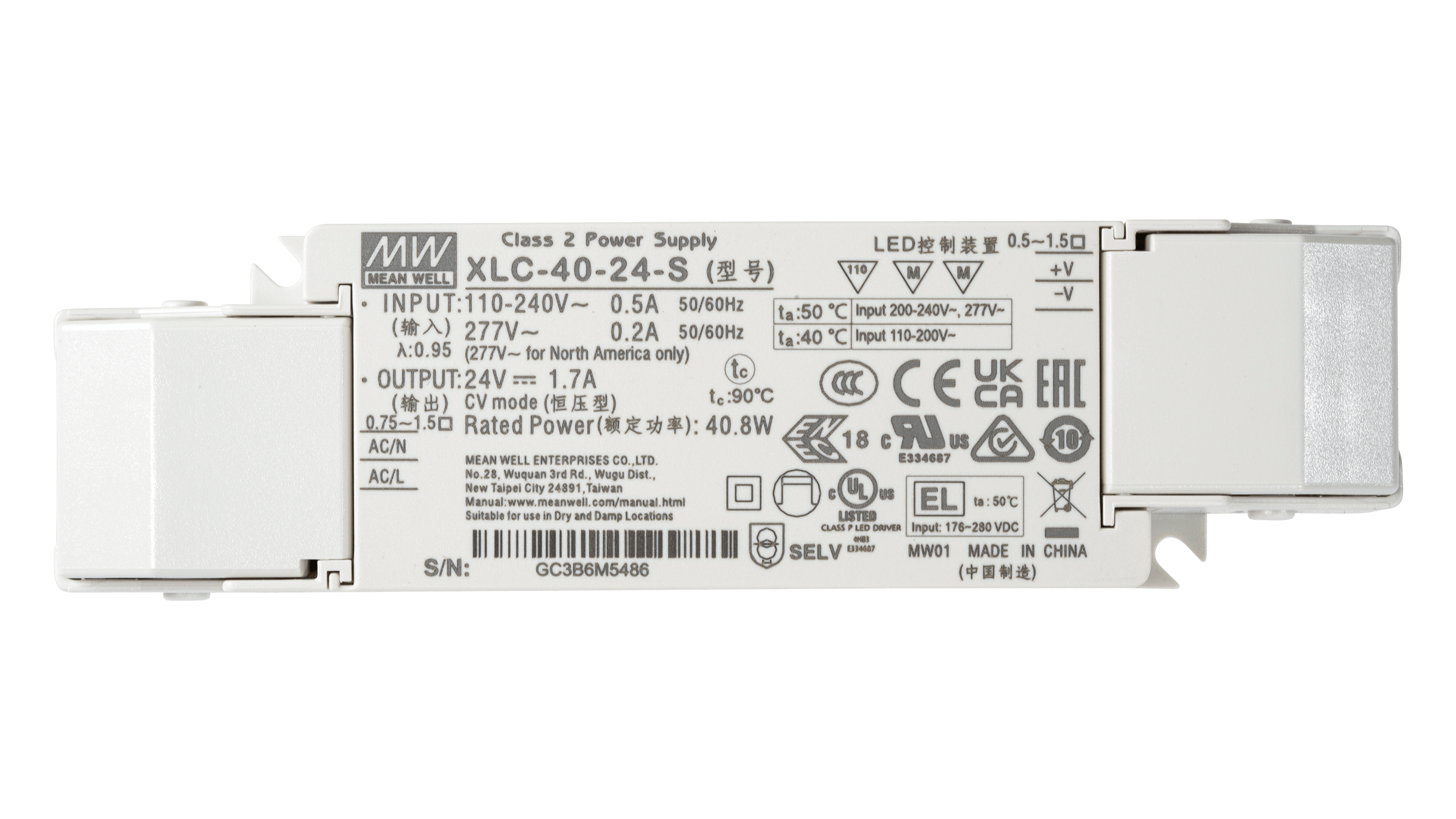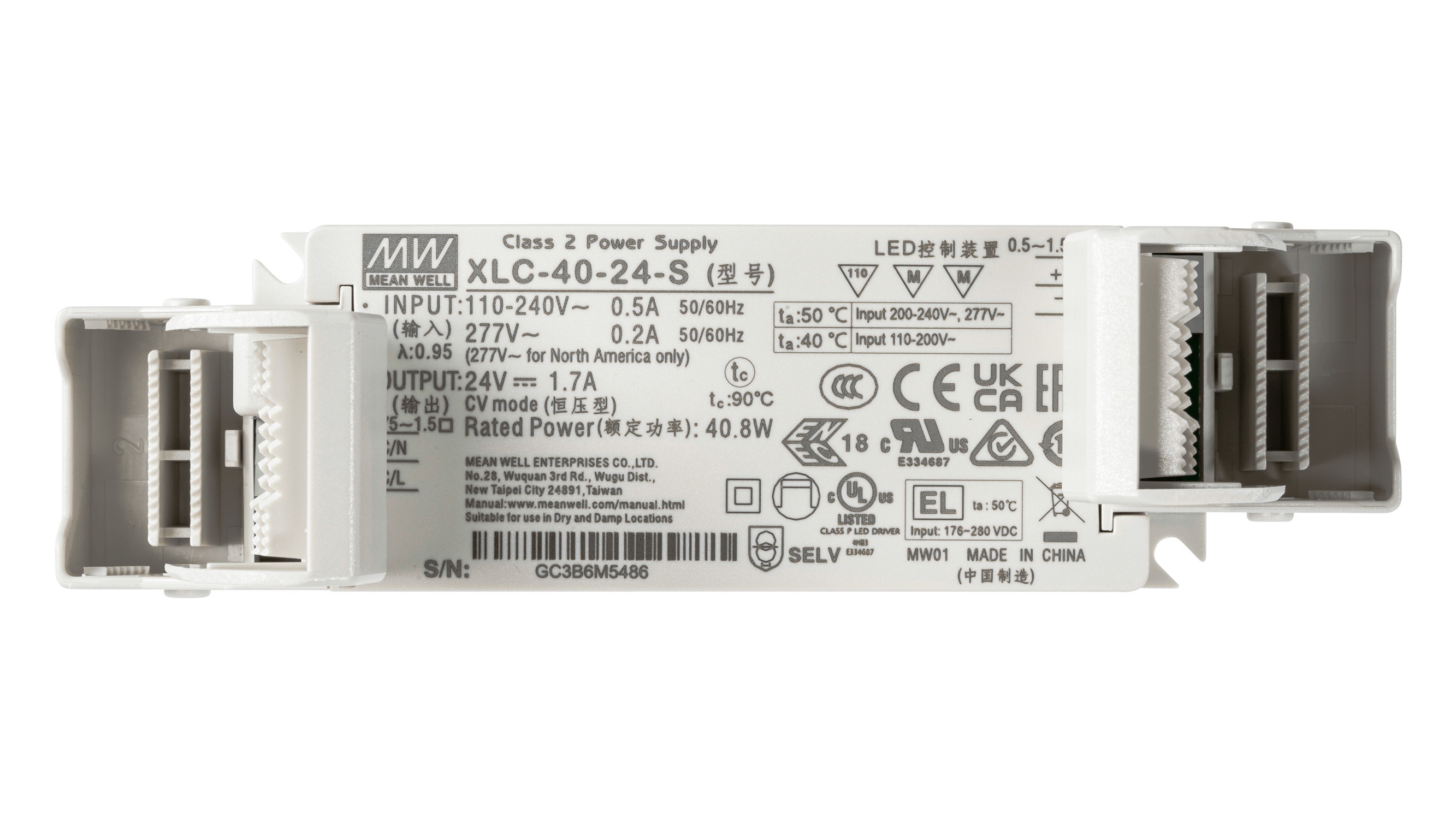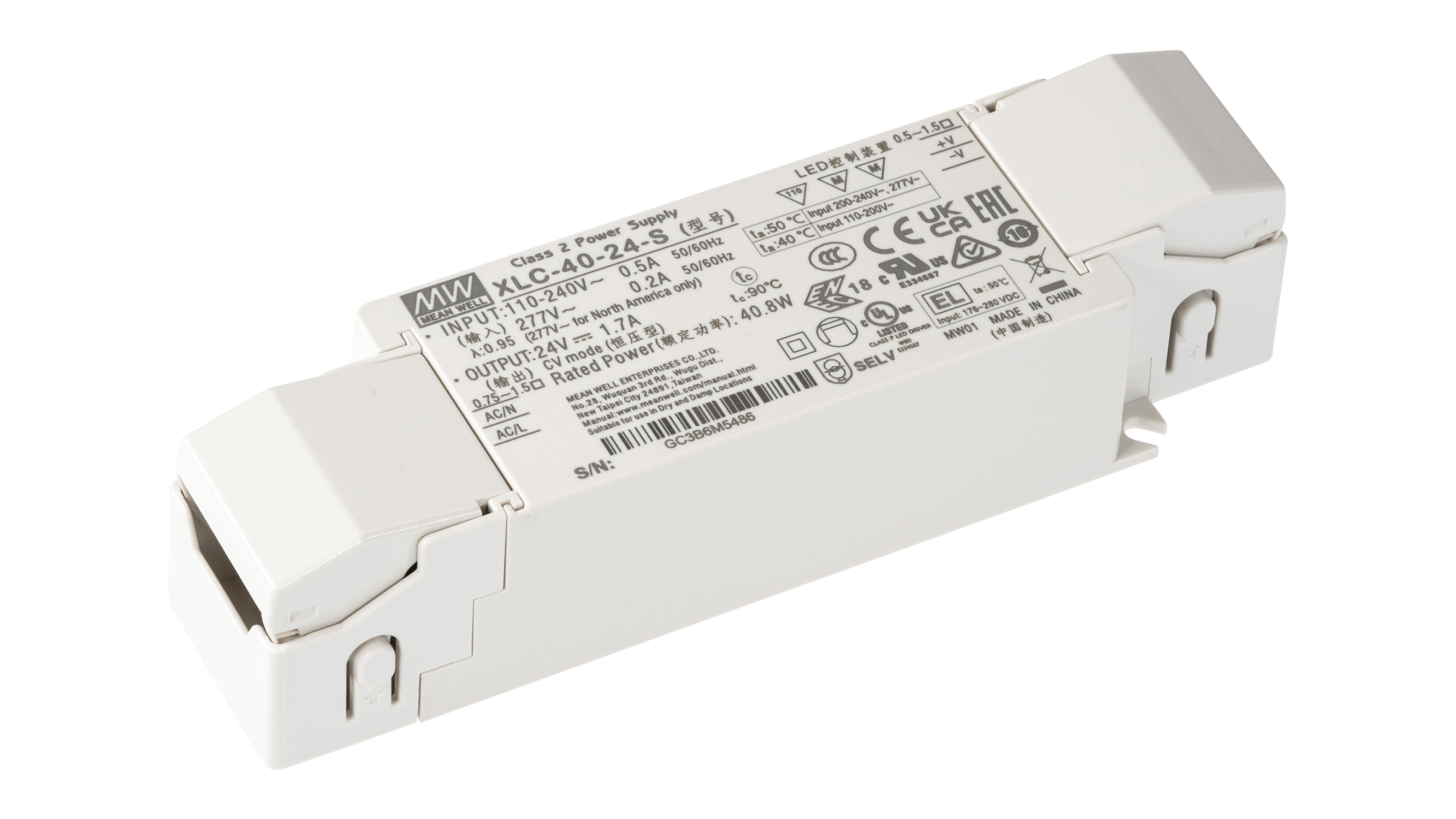 XLC-40-24-S ist ein 40 Watt LED Treiber für 24Vdc LED Anwendungen. Der Anschluss über Push-in Klemmen und die integrierte Zugentlastung machen den XLC-40-24-S ideal für den Einbau in oder auch ausserhalb von Leuchten.