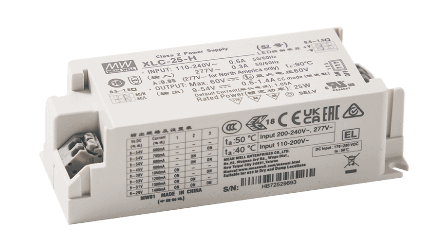 XLC-25-H-BN ist ein flexibler LED Treiber mit Konstantstromausgang für den direkten Betrieb von LED Beleuchtungsanwendungen mit 3in1 Dimming Funktion.