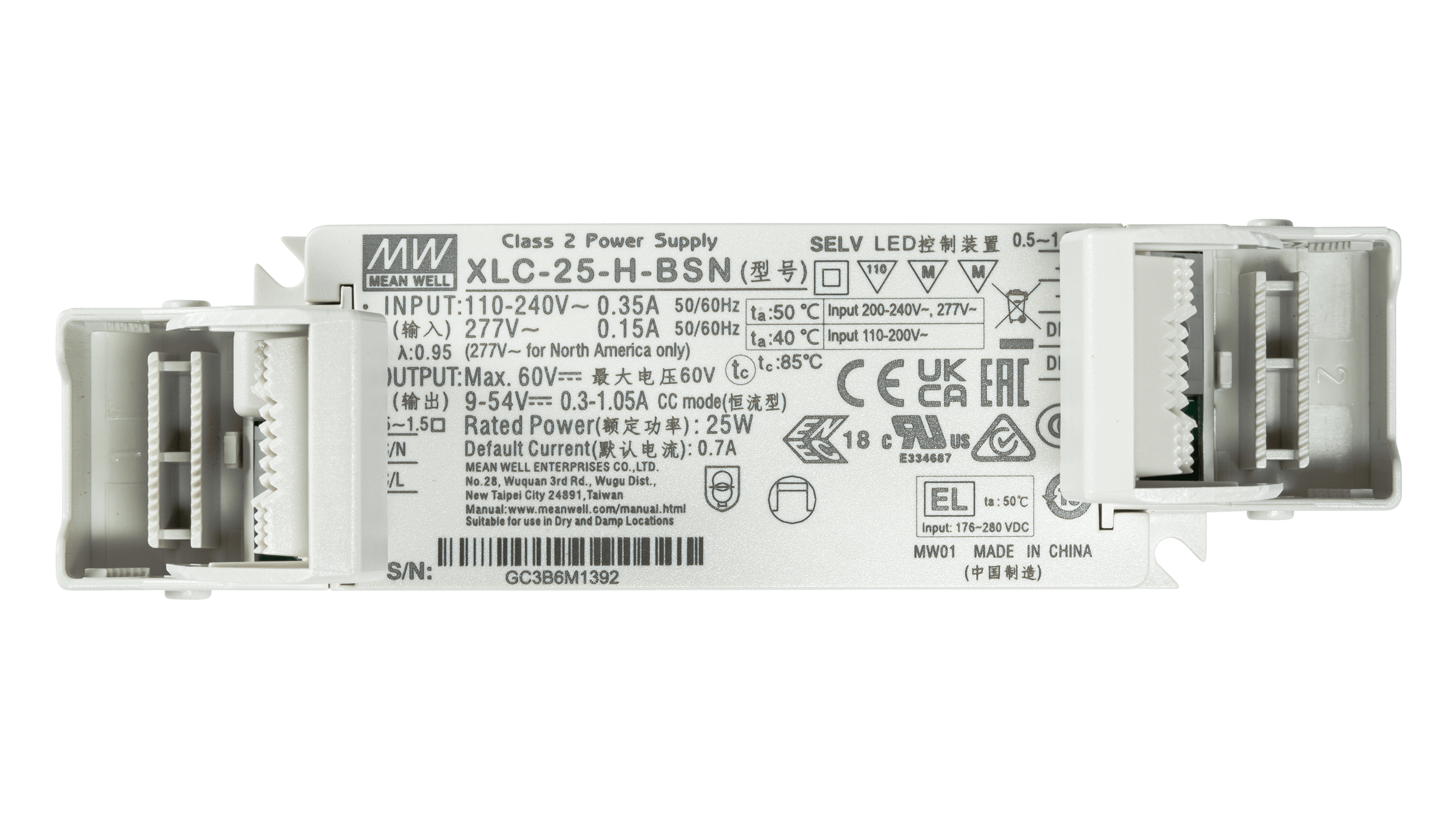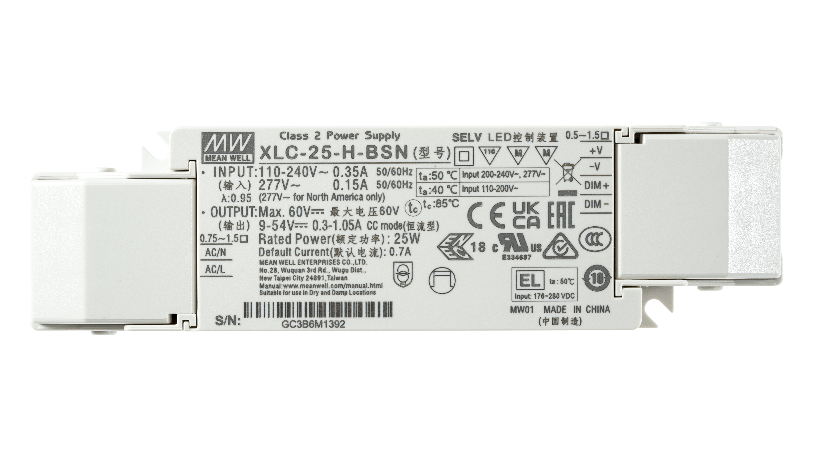 XLC-25-H-BSN ist ein flexibler LED Treiber mit Konstantstromausgang für den direkten Betrieb von LED Beleuchtungsanwendungen mit 3in1 Dimming Funktion.