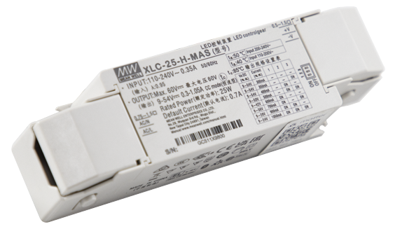 XLC-25-H-MAS ist ein flexibler LED Treiber mit Konstantstromausgang für den direkten Betrieb von LED Beleuchtungsanwendungen. Über Matter drahtlos dimmbar. Variante mit Zugentlastung für den Einsatz ausserhalb der Leuchte.