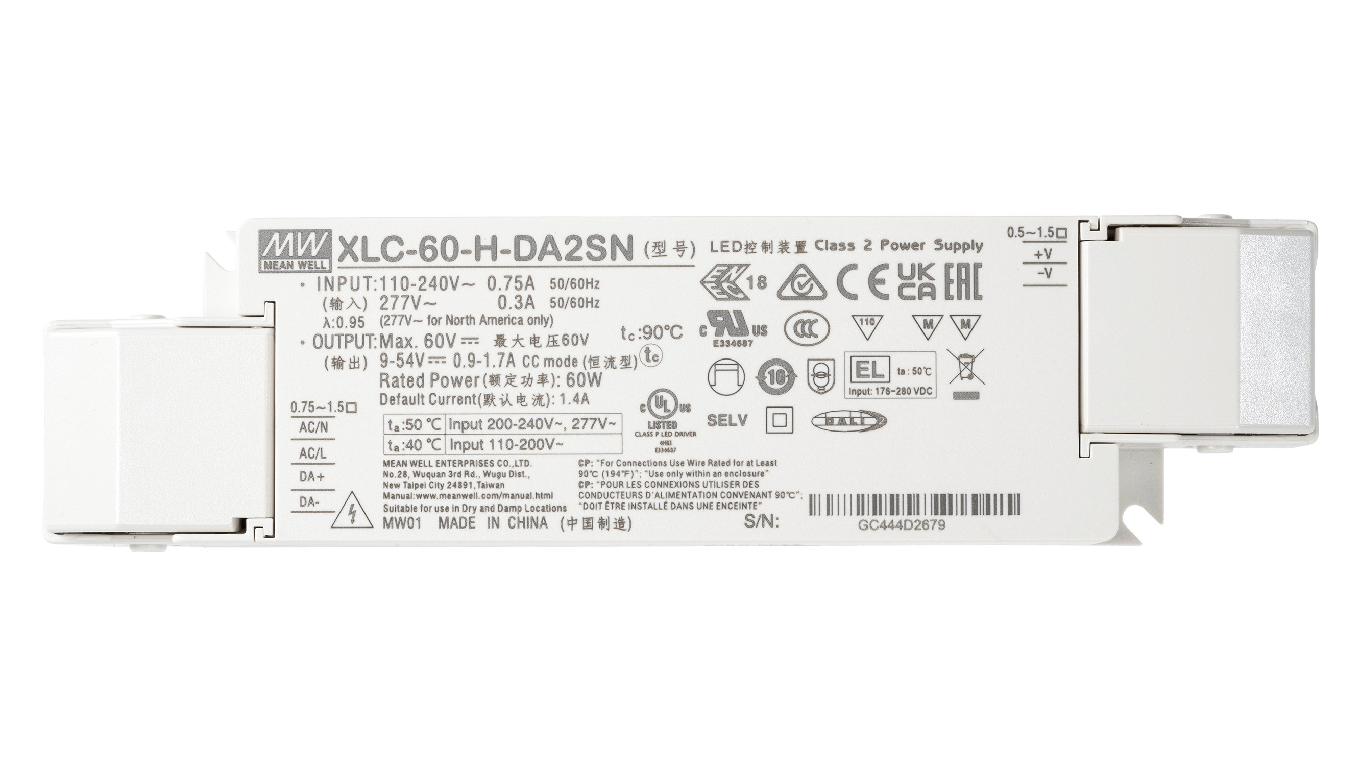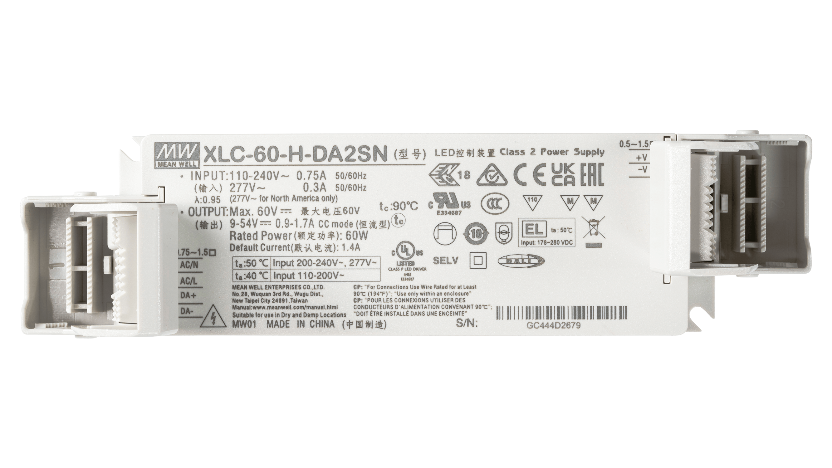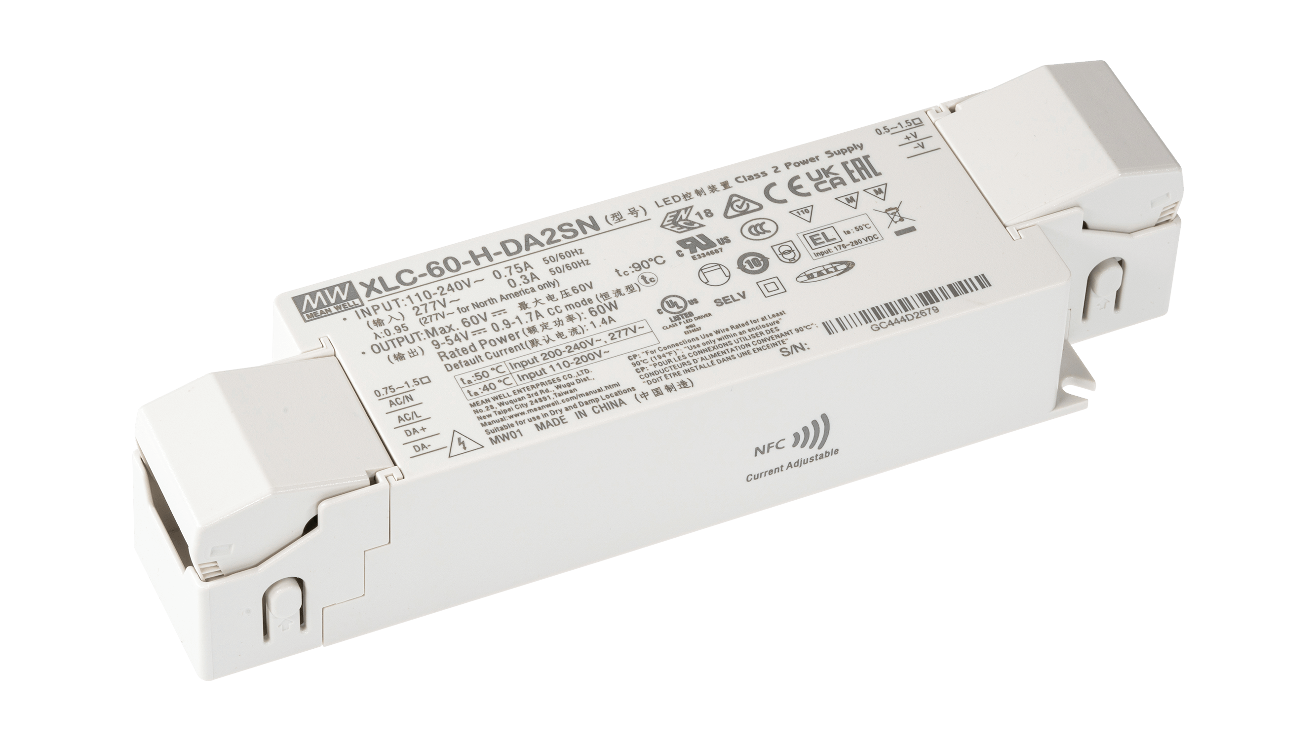 XLC-60-H-DA2N ist ein flexibler LED Treiber mit Konstantstromausgang für den direkten Betrieb von LED Beleuchtungsanwendungen. Über AC Push oder DALI dimmbar.
