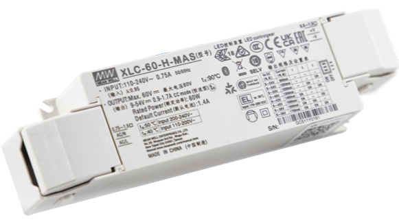 XLC-60-H-MAS ist ein flexibler LED Treiber mit Konstantstromausgang für den direkten Betrieb von LED Beleuchtungsanwendungen. Über Matter drahtlos dimmbar. Variante mit Zugentlastung für den Einsatz ausserhalb der Leuchte.