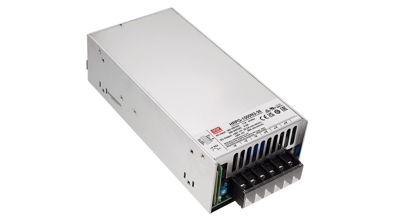 HRPG-1000N3-48 ist ein 1000W Netzteil im Gehäuse für Industrieanwendungen. Das Netzteil liefert kurzfristig bis zu 3200W Leistung und erleichtert dadurch das Aufstarten von kritischen Lasten mit hohen Anlaufströmen, wie z.Bsp. Motoren.