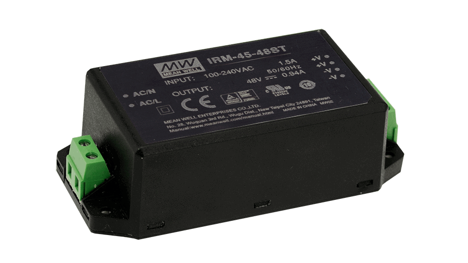 IRM-45-5ST ist ein Class II AC/DC Netzteil für Chassismontage.