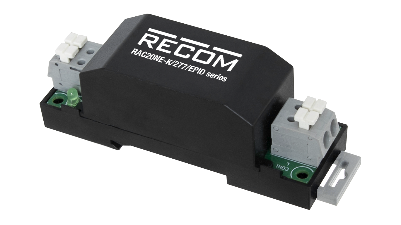 RAC20NE-K/277/EPID lassen sich flexibel an unterschiedliche Einbaubedingungen anpassen, egal ob Rückwandmontage mit Schrauben oder Aufklipsen auf DIN-Schienen gefordert ist. Neben den Push-In-Klemmen für den werkzeuglosen Anschluss von Leitungsquerschnitten bis 2,5 mm² sind die Module in der Schutzart IP40 ausgeführt. Trotz ihrer extrem kompakten Bauweise bieten die Geräte der Klasse II eine erhöhte Beständigkeit gegen Überspannungen bis zu 2 kV L-N und 4 kV gegen Erde sowie EMI-Störungsfilter, die den Anforderungen der EN55032-Klasse „B“ unter erdfreien oder erdgekoppelten Lastbedingungen wie PELV standhalten.