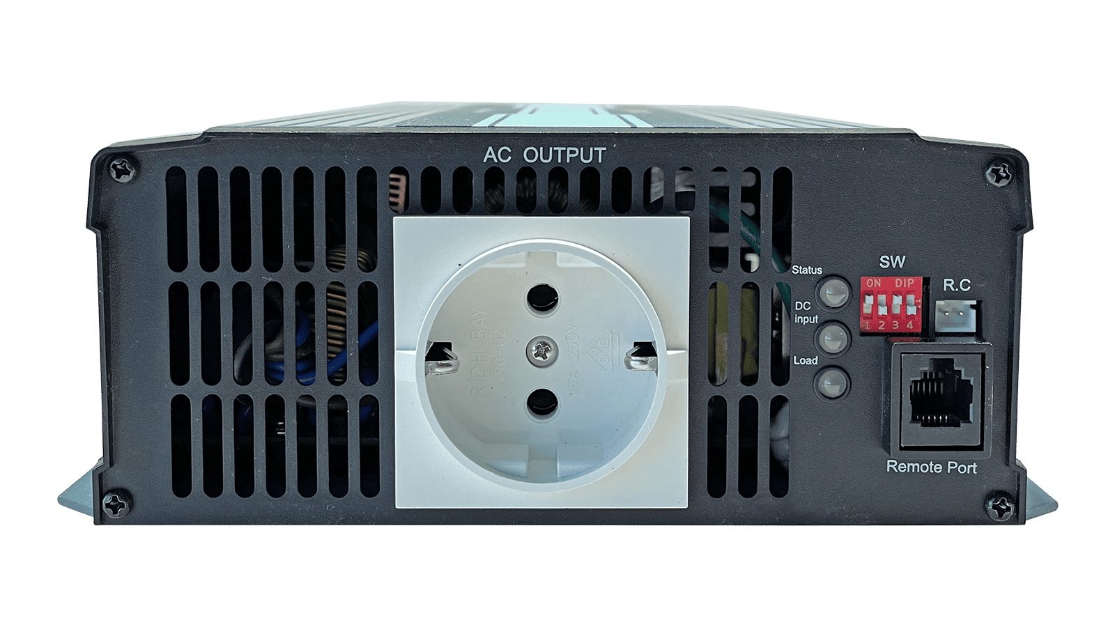 - Ausgangsspannung und Frequenz mit DIP Switch einstellbar, 200Vac, 220Vac, 230Vac, 240Vac, 50Hz / 60Hz